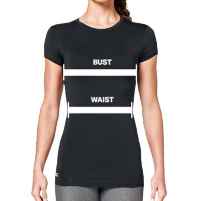 BUST: Place tape measure under your arms at the fullest part of your chest, wrap around your body until your fingers meet and mark the measurement.