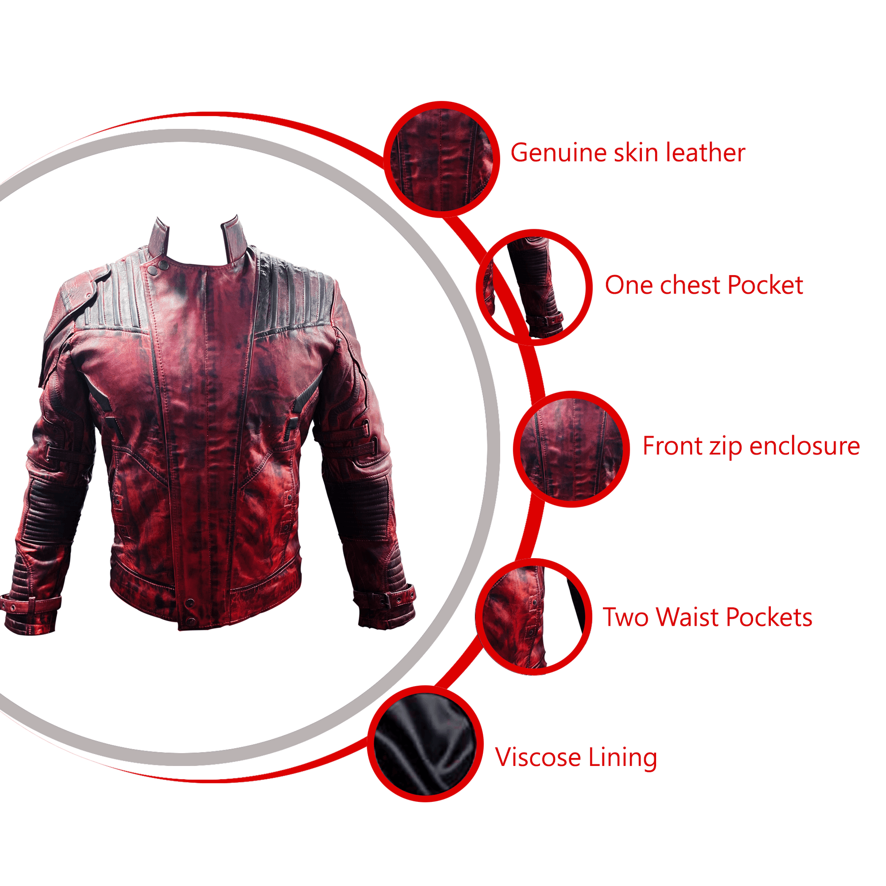 Gardian Of Galaxy Bomber Leather Jacket - Maroon - Bull Armour